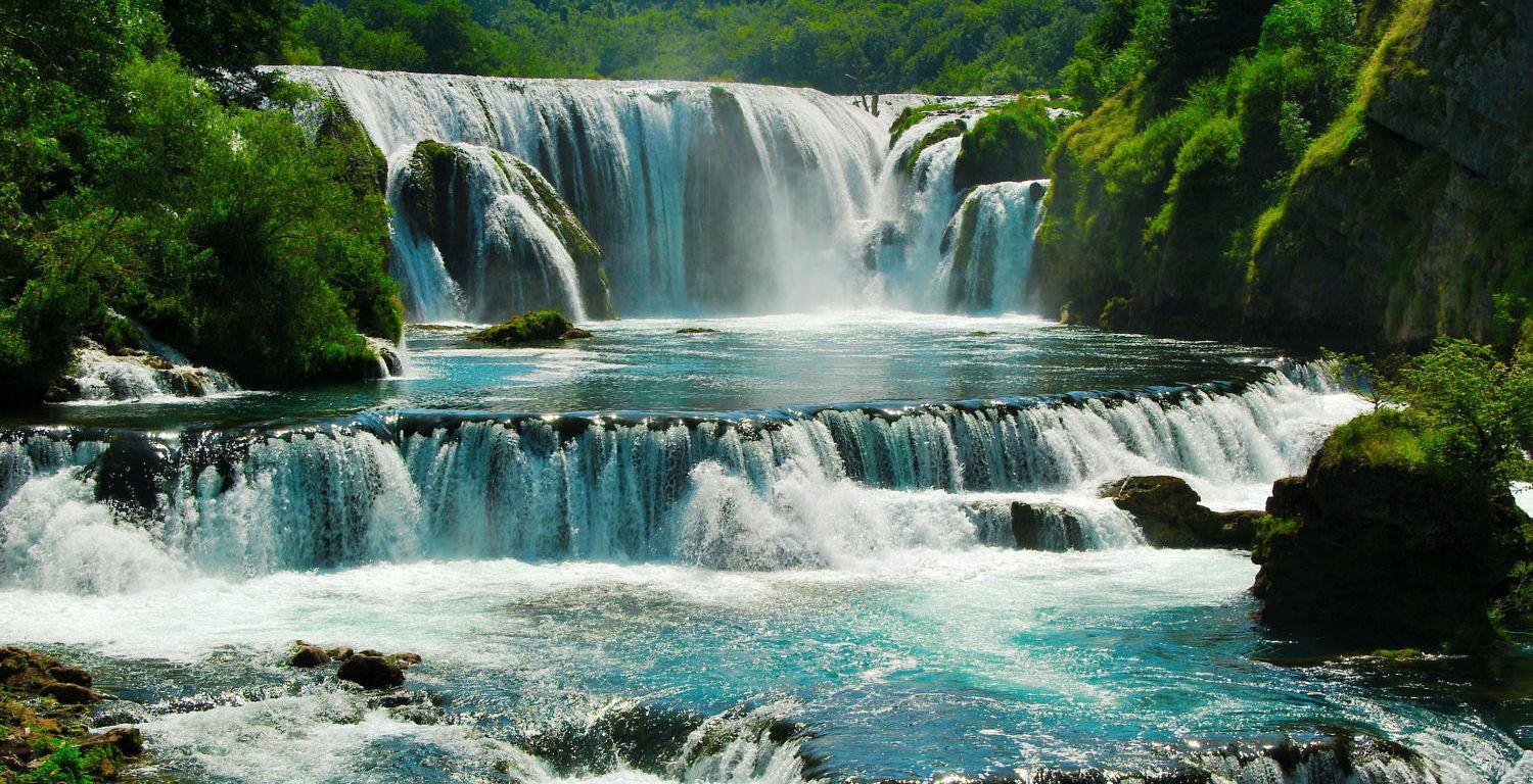 Reklo bi se da nijedna voda nema toliko – a tako malih, a tako bučnih slapova, kao ova krajiška voda. Ko zna otkud to dolazi; valjda od male strmine korita i od mnogo stijenja u njemu, preko kojega se slivaju slapovi – a ponegdje tako da grade čitave male vodene zavjese u kojima, na suncu, drhte i trepere dugine boje. Una tada dođe kao kakva nevjesta, ogrnuta nevjestačkim velom i silno bojama išarana.